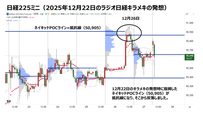 こちらは、2025年12月22日放送の日経ラジオ『キラメキの発想』の番組内で、事前に指摘したネイキッドPOC(50,905) です。